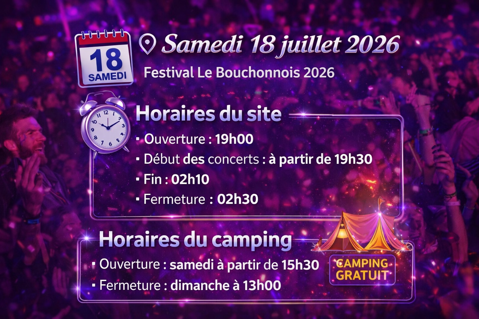 ⏰ Les horaires du festival